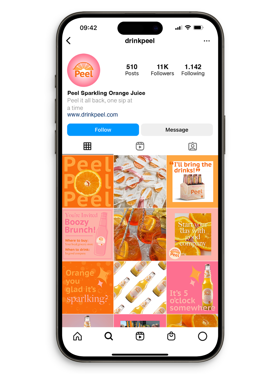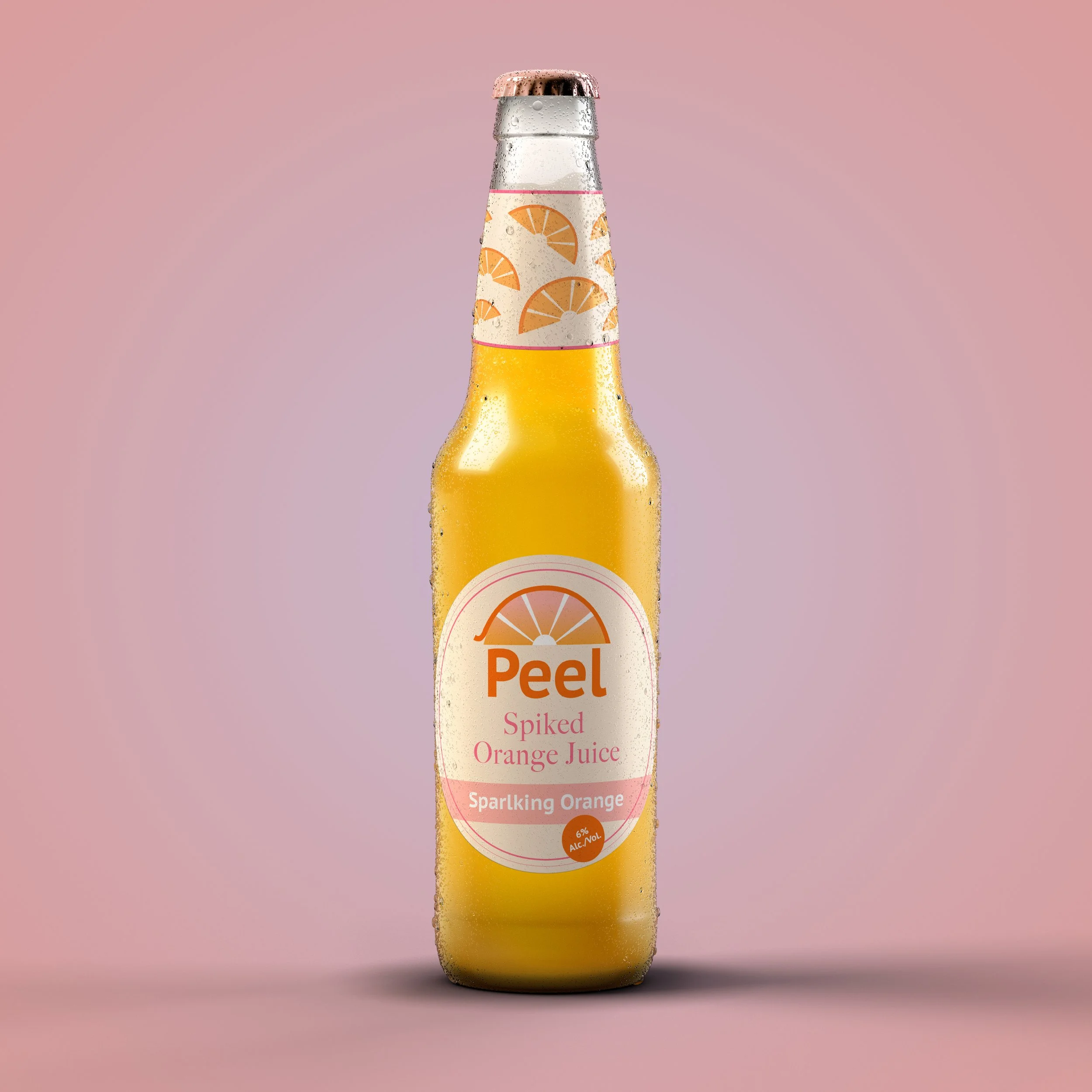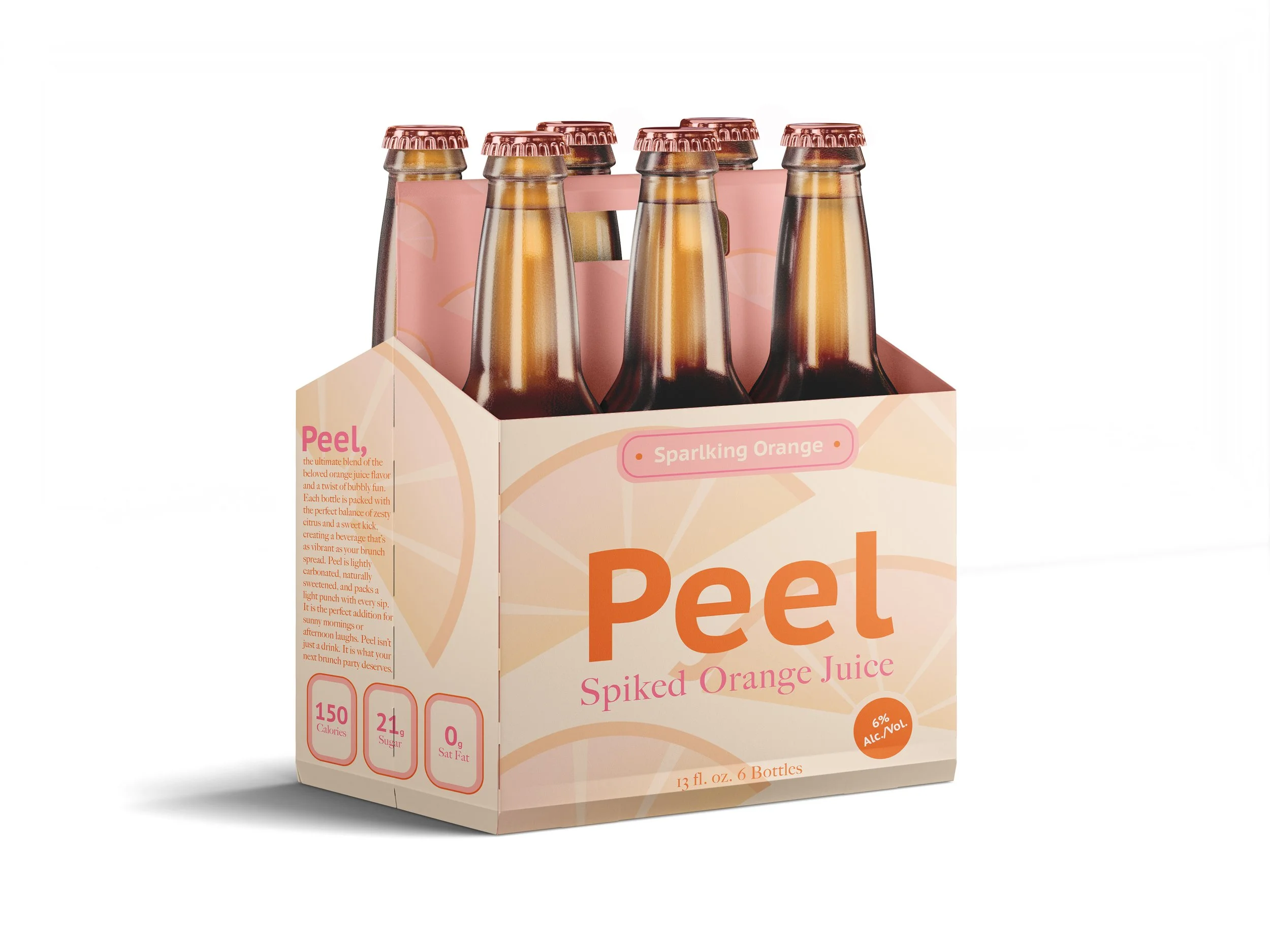 Peel is a sparkling orange juice, designed to be photo-ready at your next brunch party, utilizing sunrise colors to help kickstart a sparkling day.